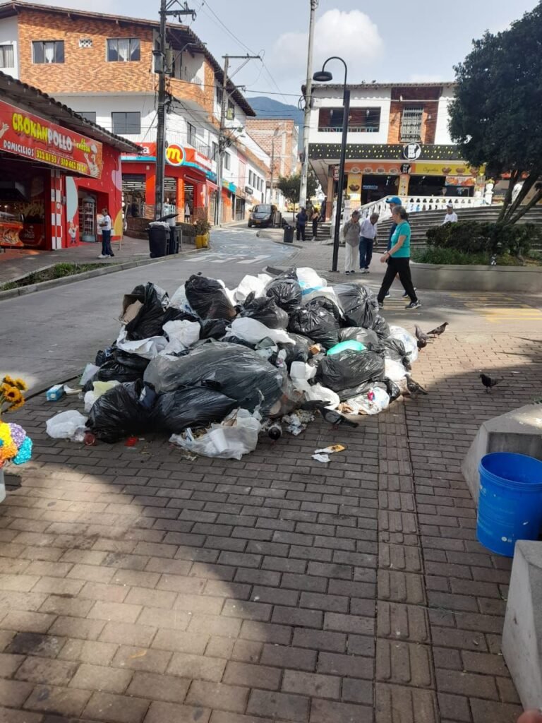 Cada fin de semana, especialmente los domingos y lunes en la mañana, los habitantes de La Estrella se enfrentan a un panorama repetitivo y alarmante: el parque principal y sus alrededores colapsan por acumulación de basuras.