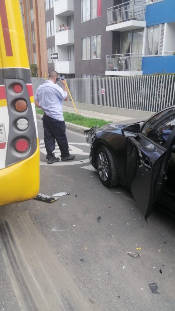 El más reciente siniestro, ocurrido el 10 de noviembre de 2025, involucró un bus y un vehículo particular justo frente al ingreso al edificio.