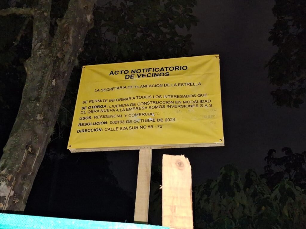 Habitantes del municipio de La Estrella expresan su preocupación por la licencia de construcción que la Secretaría de Planeación otorgó en un predio cercano a la quebrada La María. El permiso autoriza la edificación de una torre de seis niveles, con un área construida superior a 1.700 metros cuadrados, que incluirá 15 viviendas y cuatro locales comerciales.